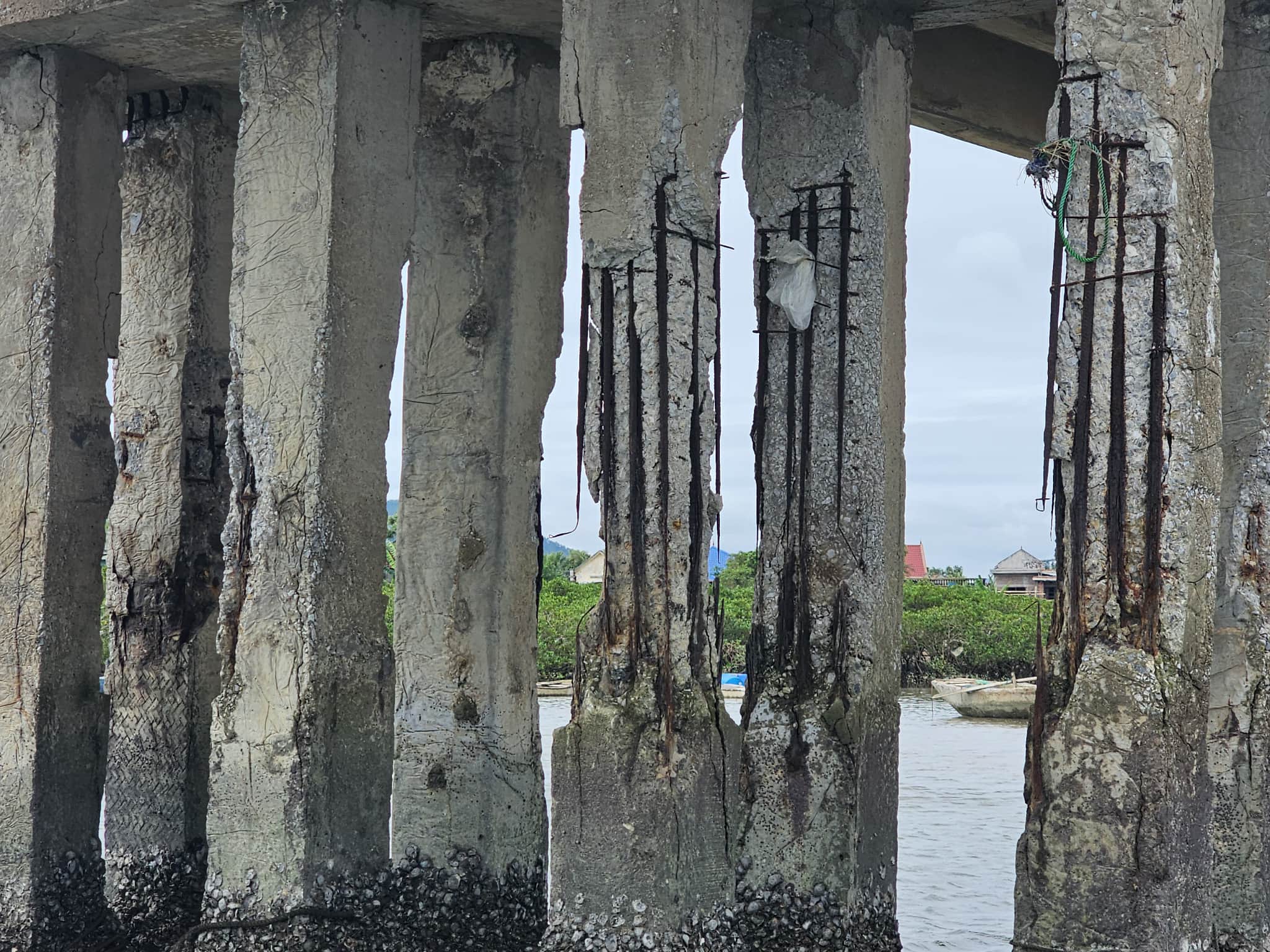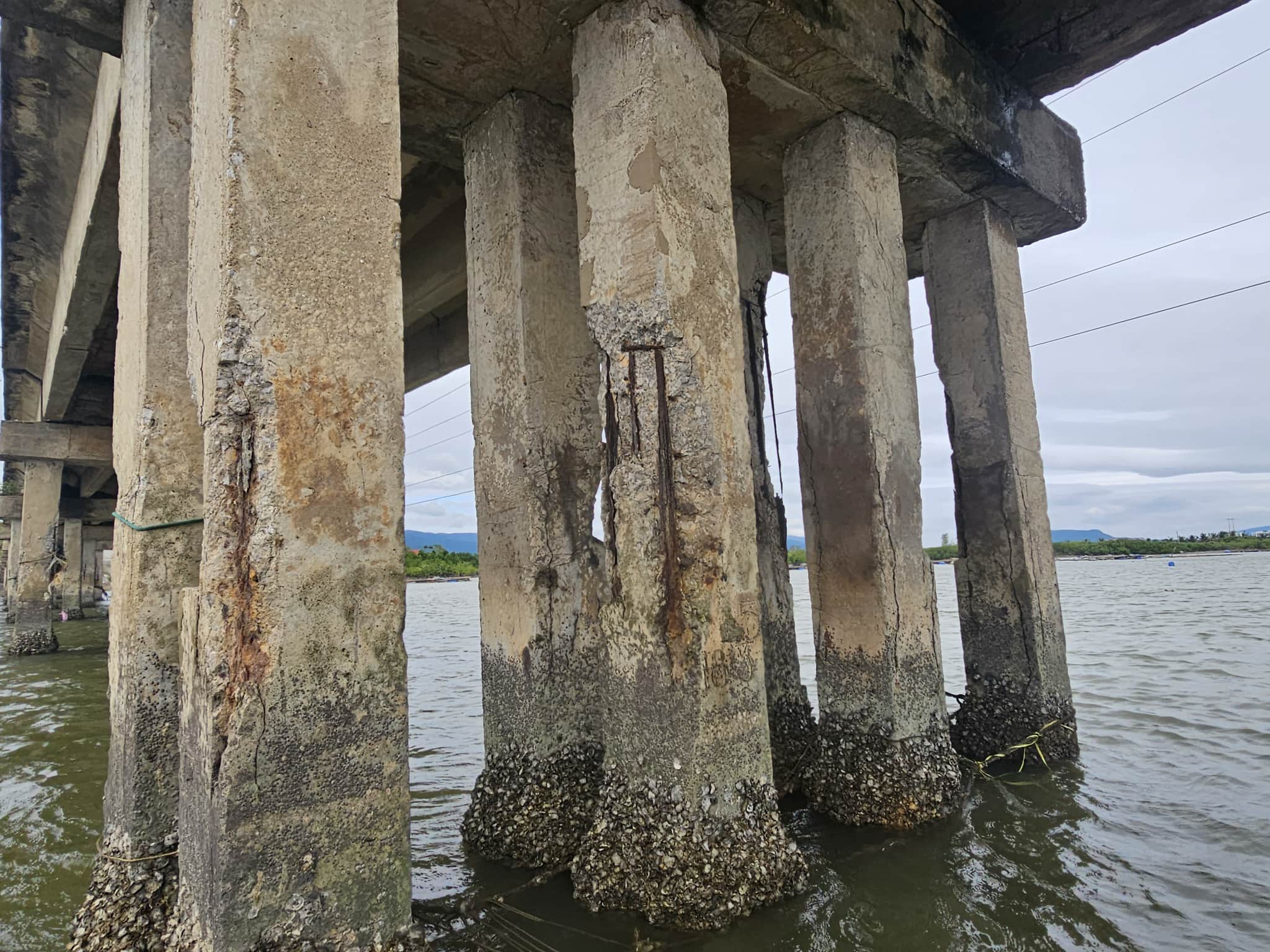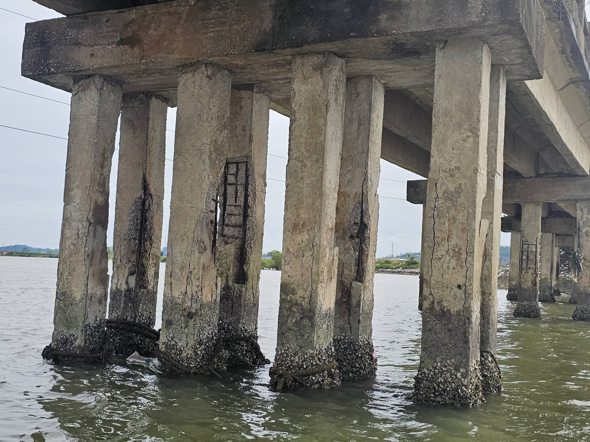 Ghi nhận thực tế, cây cầu hiện nay đang tồn tại những vết nứt lớn ở mố cầu, chân trụ cầu. Bên dưới gầm cầu, các trụ cột bê tông đã bị bong lở lớp bê tông phía ngoài để lộ ra phần sắt hen gỉ bên trong vì đã trường tồn cùng năm tháng, khiến cho cây cầu không còn “sức sống” có thể đổ sập bất cứ lúc nào.