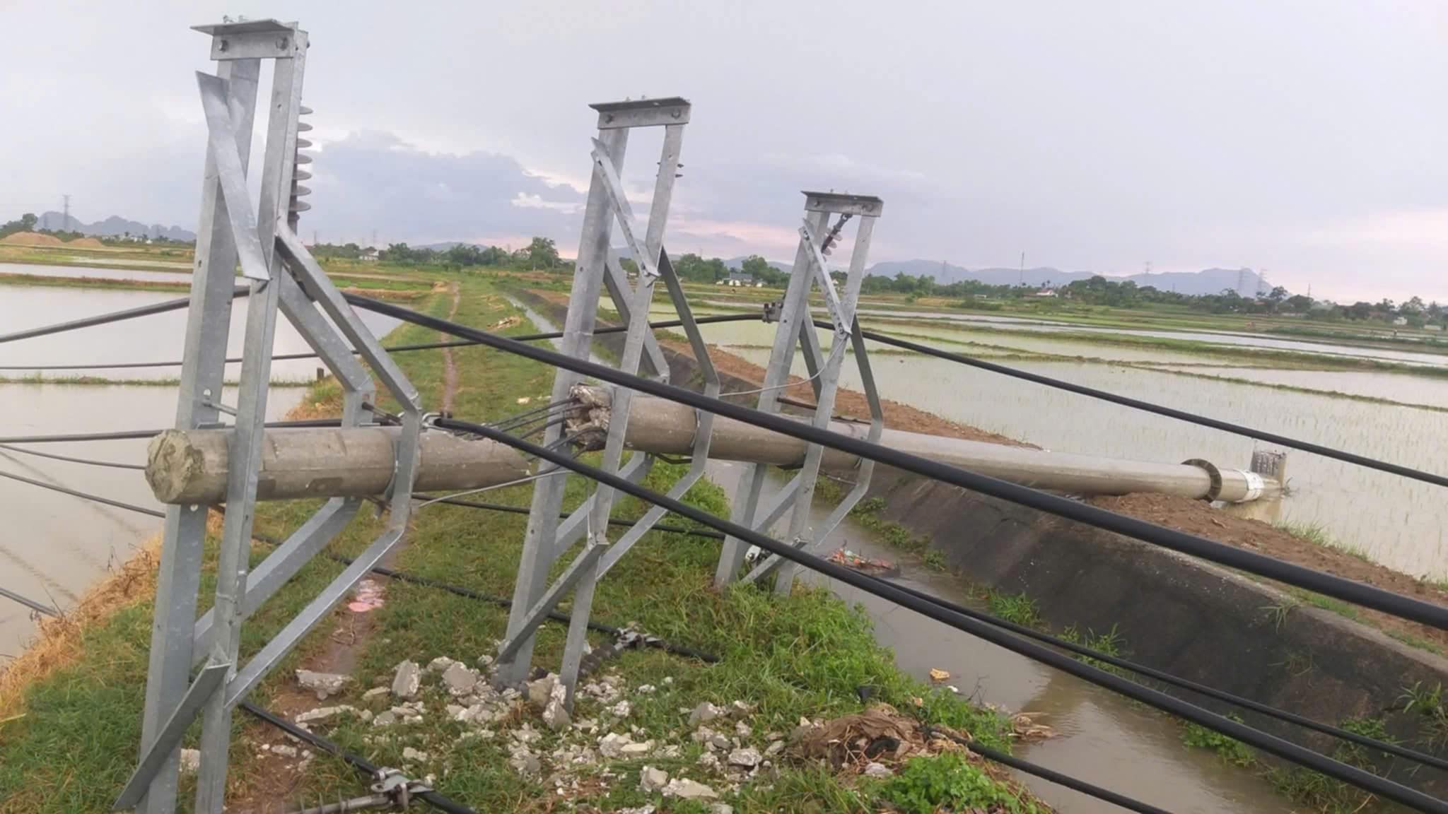 Thanh Hóa: Nhiều cột điện gãy đổ sau cơn dông