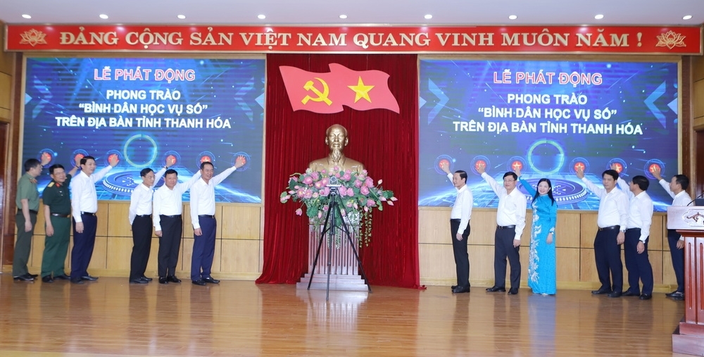 (TH&PL) - Sáng 8/5, UBND tỉnh Thanh Hóa tổ chức Lễ phát động phong trào “Bình dân học vụ số” trên địa bàn toàn tỉnh bằng hình thức trực tiếp kết hợp trực tuyến qua 1.018 điểm cầu từ tỉnh đến bản, khu phố, thu hút gần 52 nghìn cán bộ, đảng viên, người dân tham gia.