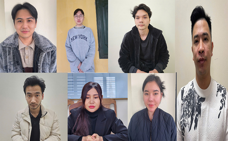 Theo đó, 7 đối tượng bị khởi tố gồm: Đào Thị Thùy Dương (SN 1997), trú ở phố Vũ Xuân Thiều, phường Phúc Lợi cùng chồng là Trần Tuấn Phương (SN 1990) ở huyện Thanh Trì, Thành phố Hà Nội (là chủ Thẩm mĩ viện Gangwhoo); Vũ Cẩm Vân (SN 1996) ở huyện Yên Mỹ, tỉnh Hưng Yên (trực tiếp quản lý cơ sở); Lê Văn Đức (SN 1996) ở huyện Thường Xuân, tỉnh Thanh Hóa (lấy tên giả là Tuấn Anh); Lê Cao Cường (SN 1997); Trương Triệu Đức (SN 1997) và Dương Đức Mạnh (SN 1995) đều ở tỉnh Thái Nguyên.