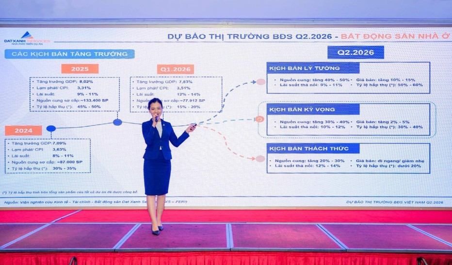 Bước sang quý 2/2026, DXS-FERI dự báo thị trường sẽ duy trì trạng thái ổn định hơn, với xu hướng phục hồi có chọn lọc. Nguồn cung mới dự kiến đạt khoảng 22.000 sản phẩm, nâng tổng nguồn cung sơ cấp lên gần 100.000 sản phẩm. Tỷ lệ hấp thụ được kỳ vọng ở mức 20–30%, phản ánh sức cầu cải thiện nhưng không đồng đều, chủ yếu đến từ nhu cầu ở thực và đầu tư trung – dài hạn.