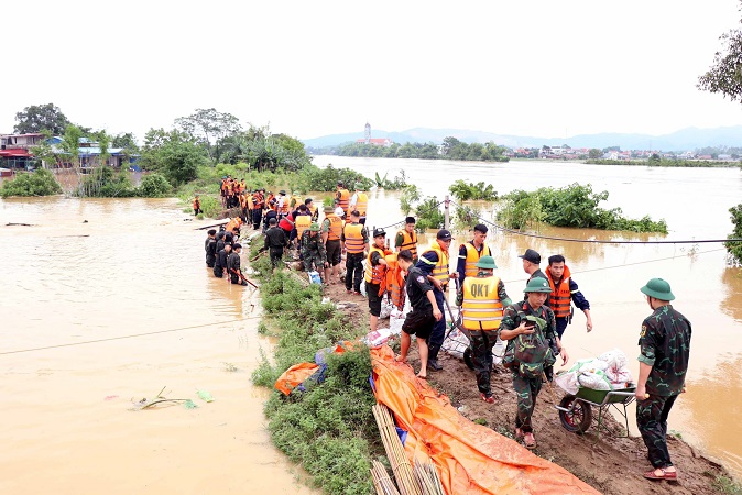 Triển khai công tác hộ đê, bảo đảm an toàn đê điều, hồ đập, huy động tối đa có thể lực lượng, phương tiện, vật tư để kịp thời xử lý các sự cố ngay từ giờ đầu; bằng mọi biện pháp tiếp cận những nơi bị ngập sâu, chia cắt để kịp thời cứu trợ lương thực, thực phẩm cho các hộ có nguy cơ thiếu đói, tuyệt đối không để người dân đói, khát.
