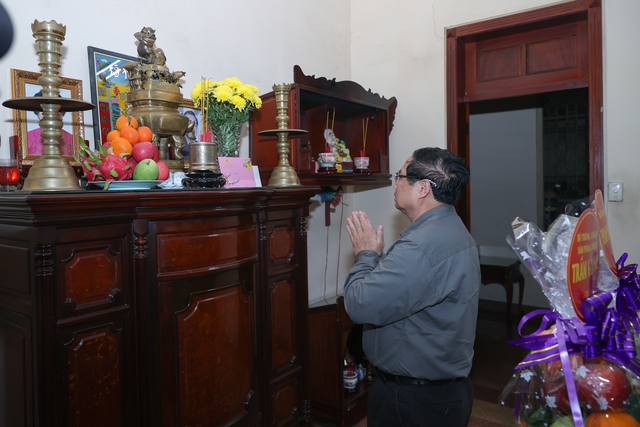 THPL - Chiều 1/2 (tức mùng 4 Tết Tân Tỵ), tại TPHCM, nhân dịp Tết cổ truyền của dân tộc, Thủ tướng Chính phủ Phạm Minh Chính đã dâng hương tưởng nhớ cố Thủ tướng Chính phủ Phan Văn Khải và thăm hỏi, chúc Tết gia đình, thân nhân đồng chí Phan Văn Khải.