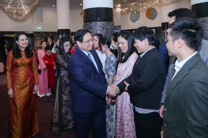 Tại buổi gặp, Thủ tướng bày tỏ xúc động và gửi lời thăm hỏi thân tình đến bà con đang sinh sống, học tập và làm việc tại Estonia. Ông đánh giá cao tinh thần đoàn kết, hội nhập và nỗ lực đóng góp tích cực của cộng đồng kiều bào đối với đất nước sở tại cũng như trong việc làm cầu nối gắn kết với quê hương.