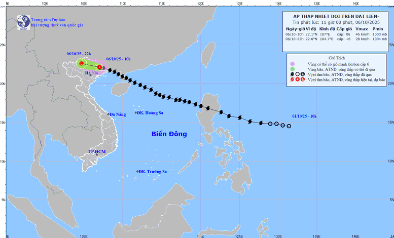 Tuy nhiên, theo dự báo hoàn lưu bão số 11 sẽ gây mưa to và có thể dông lốc trong ngày 06-07/10/2025: khu vực vùng núi, trung du Bắc Bộ lượng mưa phổ biến 100-200mm, cục bộ có nơi mưa rất lớn tới trên 300mm (đặc biệt nguy cơ mưa cường suất lớn trên 150mm trong 3 giờ); khu vực đồng bằng Bắc Bộ và Thanh Hóa có mưa vừa, mưa to với lượng mưa phổ biến 50-150mm, cục bộ có nơi mưa rất to trên 200mm.