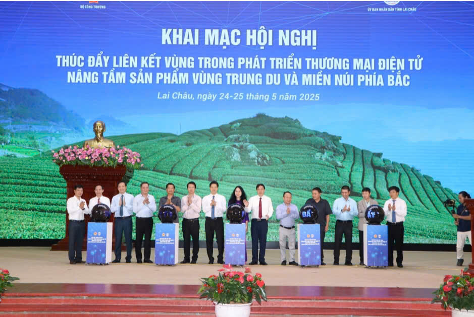 (THPL) - Ngày 24/5, tại Trung tâm Hội nghị tỉnh Lai Châu, Cục Thương mại điện tử và Kinh tế số (Bộ Công Thương) phối hợp với UBND tỉnh Lai Châu tổ chức khai mạc chuỗi sự kiện “Thúc đẩy liên kết vùng trong phát triển thương mại điện tử – Nâng tầm sản phẩm vùng Trung du và miền núi phía Bắc”. Sự kiện thu hút hơn 300 đại biểu đến từ các bộ, ngành, địa phương, doanh nghiệp thương mại điện tử và hơn 100 hợp tác xã, hộ kinh doanh tiêu biểu.