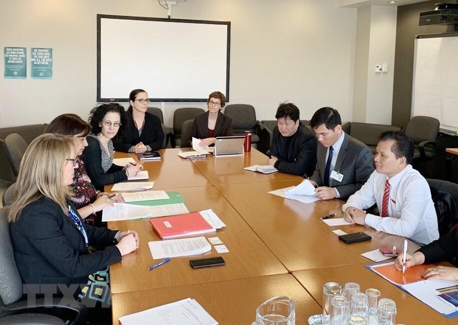 Bên cạnh đó, đoàn đã có buổi làm việc với khoa Luật của Đại học Victoria, khoa Chính sách công thuộc Đại học British Columbia, thăm và làm việc với Tổng lãnh sự quán Việt Nam tại Vancouver và gặp gỡ bà con kiều bào tại Tổng lãnh sự quán. Tại buổi gặp gỡ, đoàn đã lắng nghe tâm tư, nguyện vọng của bà con người Việt Nam đang làm ăn, sinh sống và học tập tại Canada, đồng thời đoàn cũng thông tin về các chính sách của Đảng và Nhà nước trong phát triển kinh tế - xã hội. Đại diện cộng đồng người Việt Nam tại Canada bày tỏ vui mừng được gặp gỡ đoàn công tác và mong muốn Đảng, Nhà nước tiếp tục có nhiều chính sách hỗ trợ, thu hút để khuyến khích đầu tư của cộng đồng người Việt Nam ở nước ngoài, góp phần phát triển kinh tế đất nước.