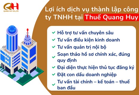 Việc thành lập một công ty TNHH đòi hỏi sự chuẩn bị kỹ lưỡng về hồ sơ pháp lý, thủ tục đăng ký và các quy định liên quan. Với kinh nghiệm hơn 13 năm trong lĩnh vực tư vấn doanh nghiệp, Thuế Quang Huy mang đến dịch vụ thành lập công ty TNHH trọn gói giúp khách hàng tiết kiệm thời gian, tối ưu chi phí và đảm bảo thủ tục nhanh chóng, chính xác.