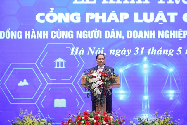 Ngay trước khi bắt đầu Tọa đàm, Thủ tướng đã thực hiện nghi thức khai trương Cổng Pháp luật quốc gia, nền tảng pháp lý trực tuyến đồng hành cùng người dân và doanh nghiệp trong thời kỳ chuyển đổi số. Đánh giá cao sự kiện này, Thủ tướng nhấn mạnh: "Mỗi việc làm là một niềm vui cho nhân dân, cho doanh nghiệp, cho xã hội", đồng thời khẳng định việc đưa Cổng Pháp luật vào hoạt động là bước tiến quan trọng trong xây dựng Nhà nước pháp quyền, minh bạch và hiệu quả.