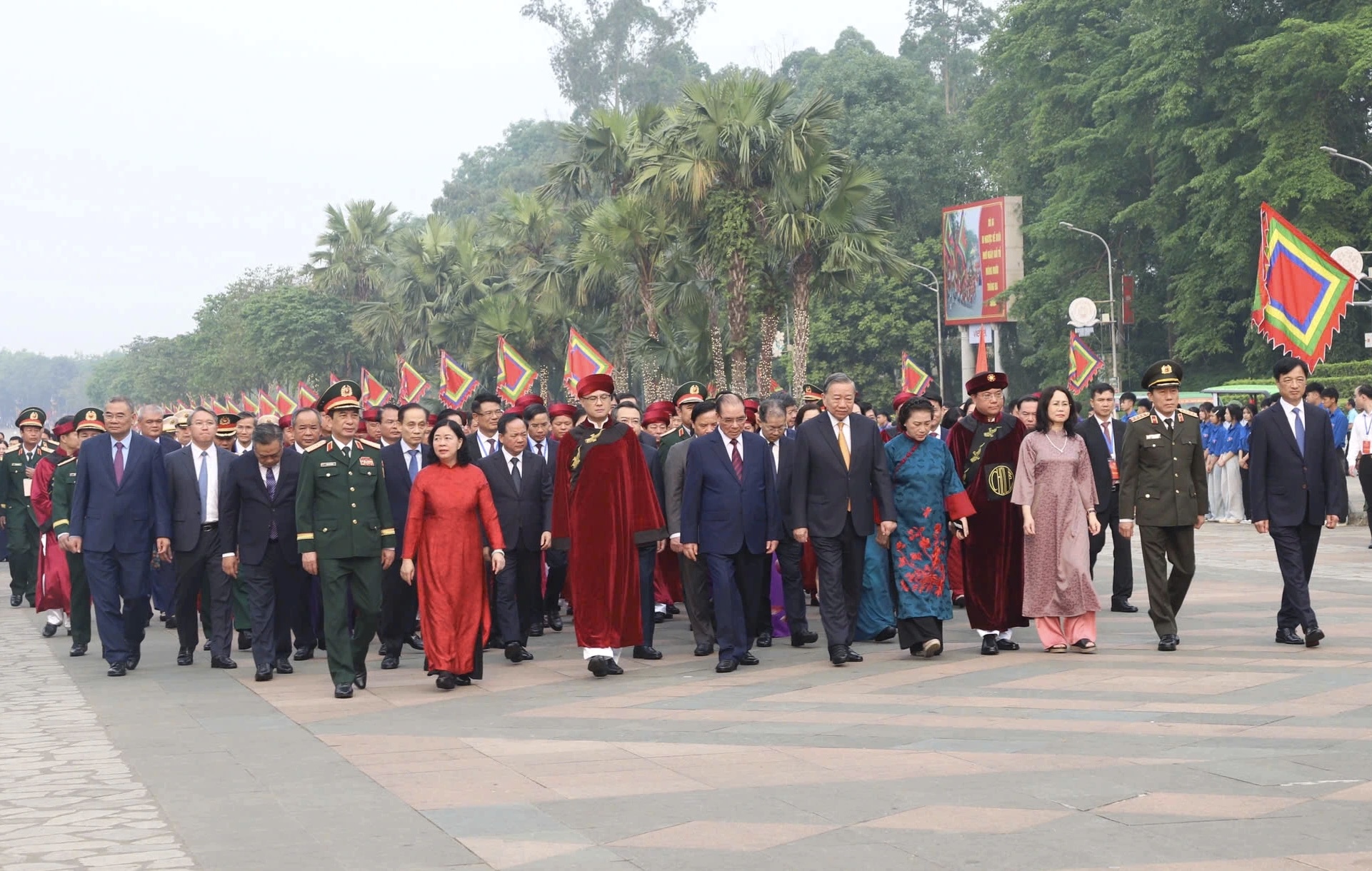 Đúng 7h ngày 26/4 (tức mùng 10/3 Âm lịch - Ngày Giỗ Tổ Hùng Vương), tại Khu di tích lịch sử Quốc gia Đặc biệt Đền Hùng (tỉnh Phú Thọ), Tổng Bí thư, Chủ tịch nước Tô Lâm cùng các lãnh đạo, nguyên lãnh đạo Đảng nhà nước khởi hành lên núi Nghĩa Lĩnh để dâng hương tưởng niệm các Vua Hùng.