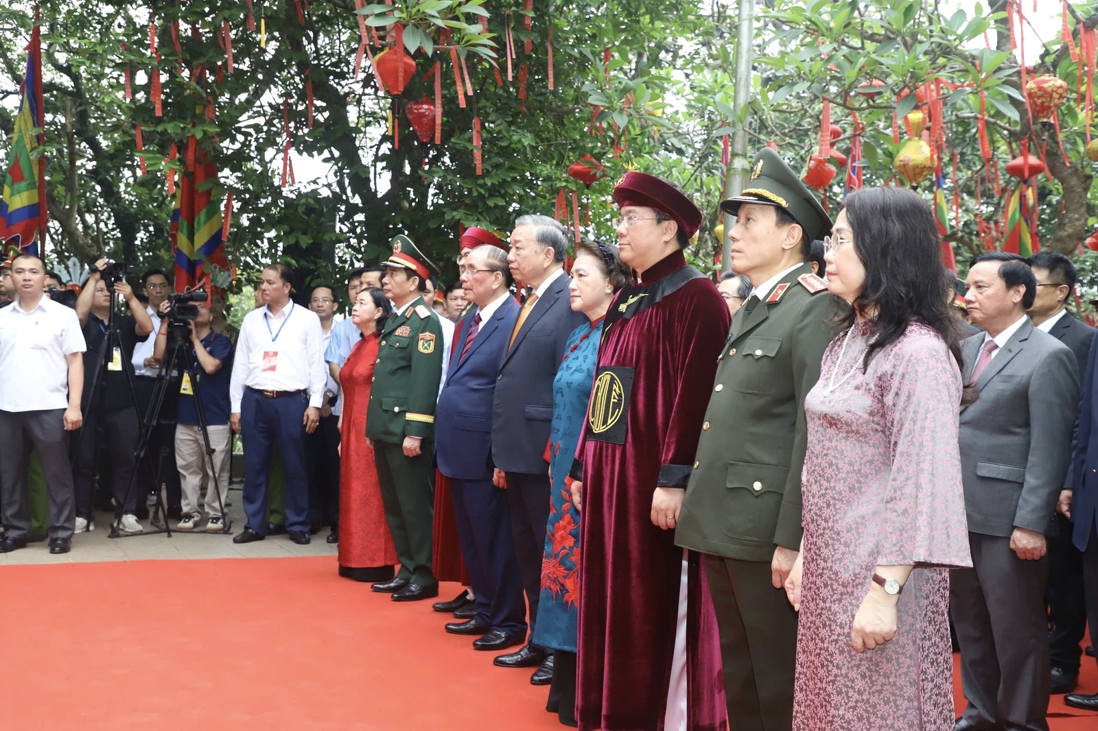 Cùng dự lễ dâng hương có nguyên Tổng Bí thư Nông Đức Mạnh; nguyên Chủ tịch Quốc hội Nguyễn Thị Kim Ngân; Chủ tịch Ủy ban Trung ương Mặt trận Tổ quốc Việt Nam Bùi Thị Minh Hoài; đại tướng Phan Văn Giang, Phó thủ tướng kiêm Bộ trưởng Bộ Quốc phòng; Trưởng ban Tổ chức Trung ương Nguyễn Duy Ngọc; Chủ nhiệm Ủy ban Kiểm tra Trung ương Trần Sỹ Thanh; Trưởng ban Tuyên giáo và Dân vận Trung ương Trịnh Văn Quyết; Trưởng ban Chính sách, Chiến lược Trung ương Nguyễn Thanh Nghị; đại tướng Lương Tam Quang, Bộ trưởng Bộ trưởng Bộ Công an; Bộ trưởng Bộ Ngoại giao Lê Hoài Trung… cùng đại diện lãnh đạo các bộ, ngành, địa phương và tỉnh Phú Thọ.