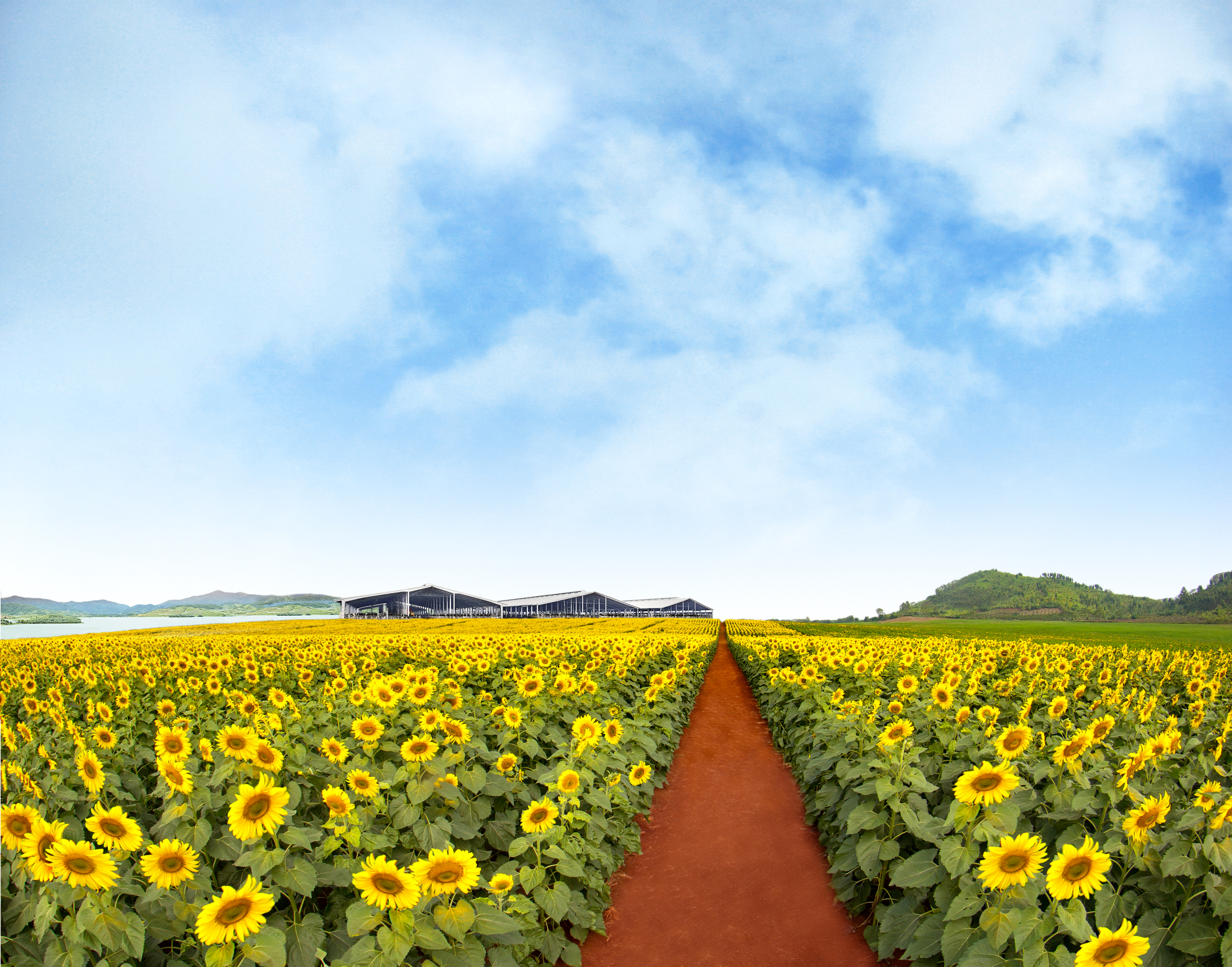 Đối diện cánh đồng hướng dương là hai trong số các trang trại bò sữa mà du khách có thể mục sở thị, thuộc “Cụm trang trại tập trung công nghệ cao với quy trình khép kín quy mô lớn nhất thế giới” - Liên minh Kỷ lục thế giới đã ghi nhận năm 2020. Xa hơn một chút là Nhà máy chế biến Sữa tươi sạch TH true MILK hiện đại, sản lượng đã đạt 1 triệu lít/ngày, với trang thiết bị tiên tiến nhập khẩu từ các nước G7 và châu Âu. Chuỗi phân phối thực phẩm sạch TH true mart với khoảng 400 cửa hàng rải khắp nước…