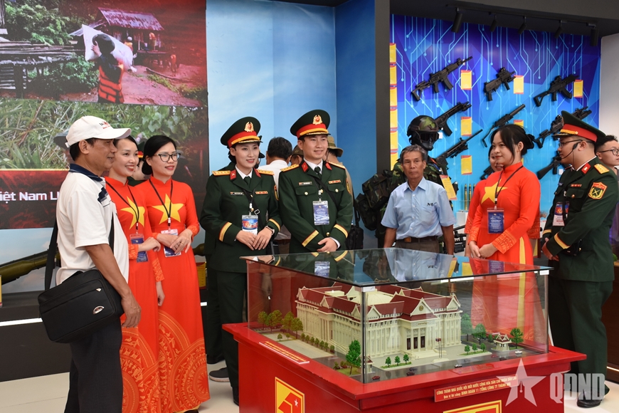 Gian trưng bày của Bộ Quốc phòng tại Triển lãm thành tựu đất nước thu hút khách tham quan. Nguồn ảnh: QĐND