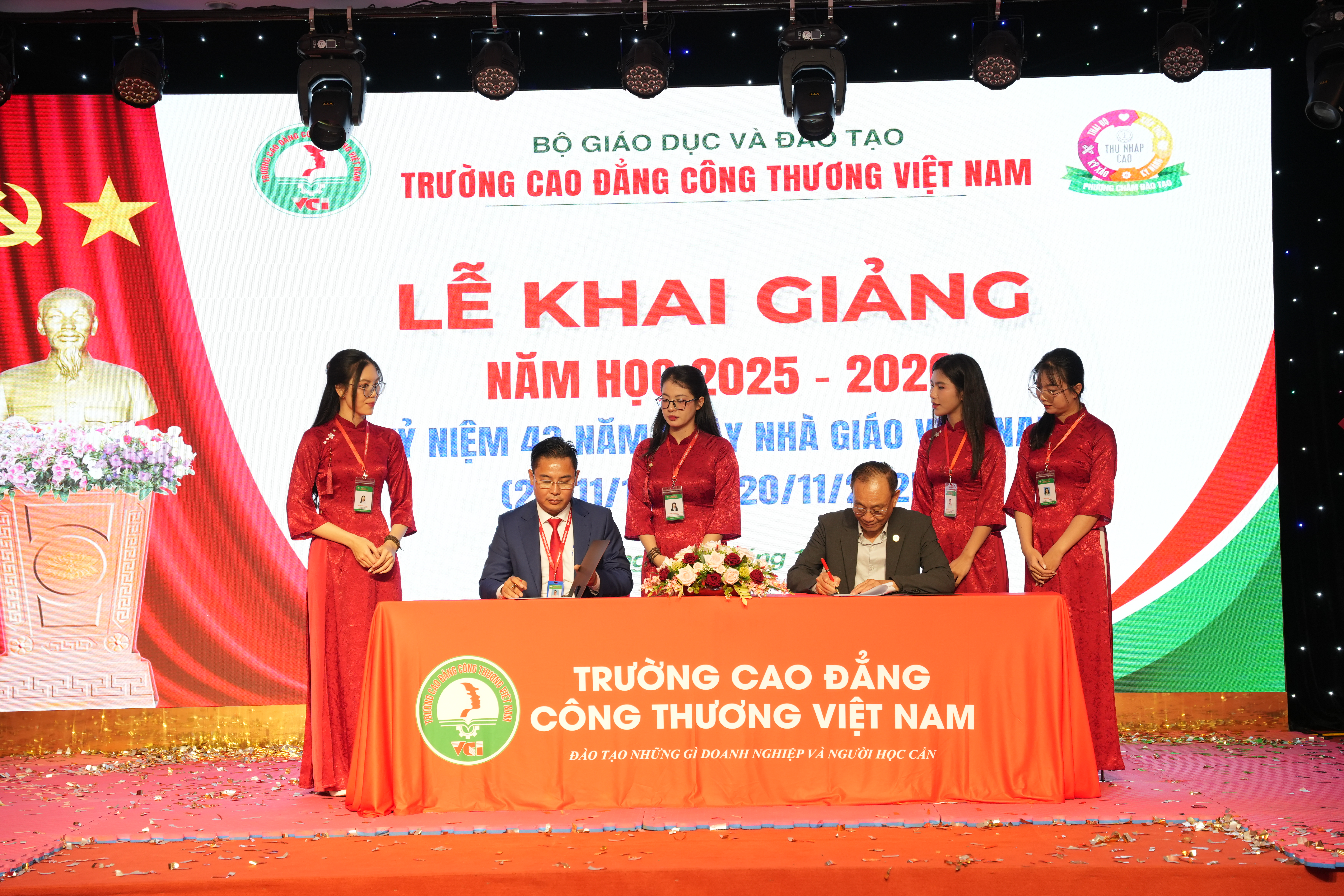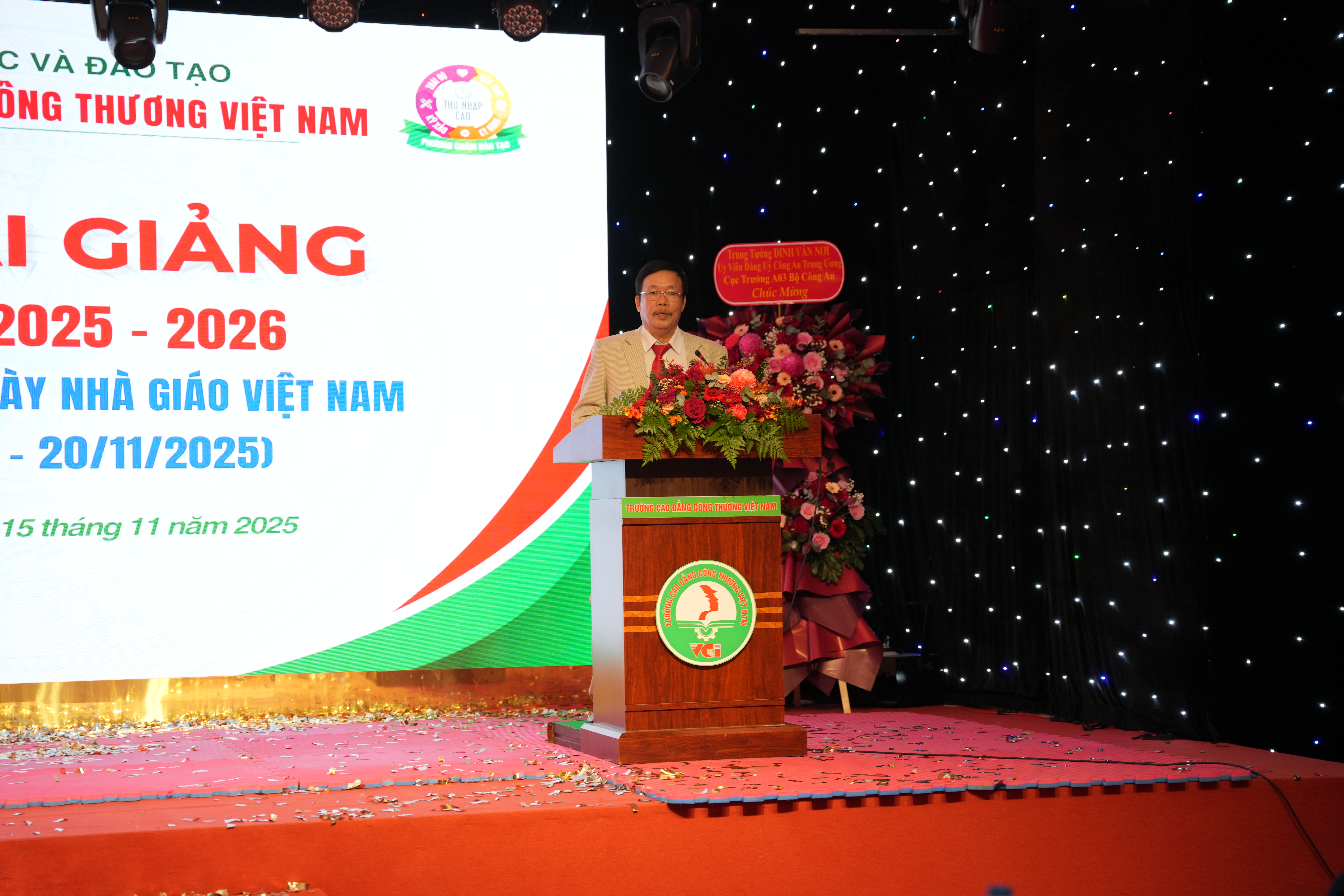 Phát biểu tại buổi lễ, PGS.TS Nguyễn Thành Vinh – Hiệu trưởng Trường Cao đẳng Công Thương Việt Nam – nhấn mạnh 7 nhiệm vụ trọng tâm của nhà trường trong năm học 2025 – 2026, bao gồm: Nâng cao chất lượng đào tạo và chuẩn đầu ra; Tích cực đổi mới phương pháp đào tạo gắn với trải nghiệm thực hành, chuyển đổi số và công nghệ AI; Đẩy mạnh Nghiên cứu khoa học trong giảng viên, người lao động và sinh viên để phục vụ tốt công tác đào tạo và quản trị nhà trường.