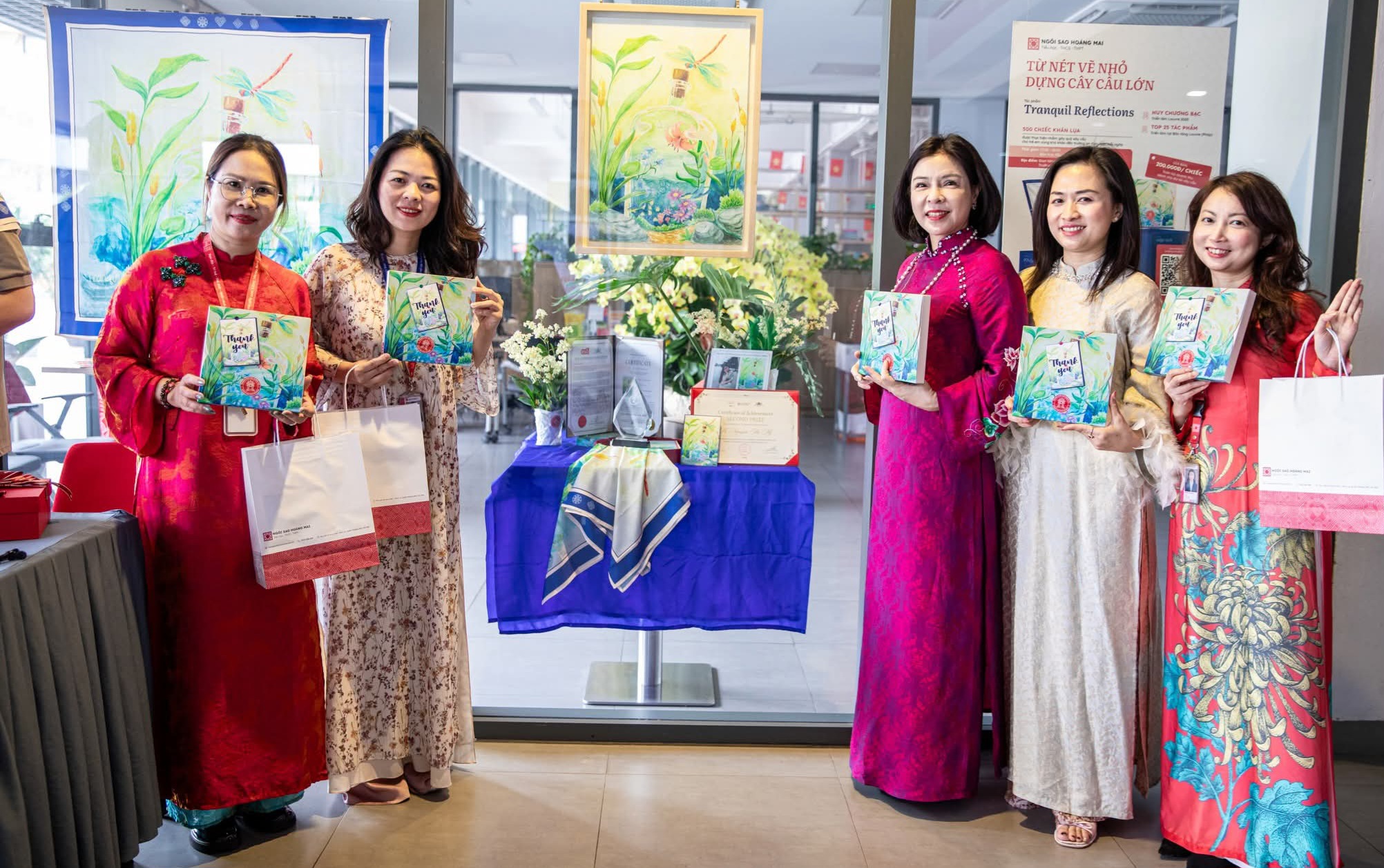Hà My mang đến chương trình 500 chiếc khăn lụa do chính em thiết kế và vẽ tay. Điều đặc biệt hơn cả: 100% doanh thu từ dự án với trị giá 88.200.000 VND được dành trọn cho quỹ xây dựng Cầu Ngôi Sao Hoàng Mai. 500 chiếc khăn không chỉ là 500 sản phẩm nghệ thuật. Đó là 500 lần một người trẻ chọn cho đi, 500 thông điệp yêu thương được gửi đi bằng hành động cụ thể. Hà My không chỉ gây quỹ, em đang truyền cảm hứng về một thế hệ học sinh có năng lực, có bản sắc và có trách nhiệm xã hội.