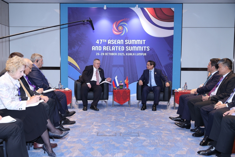 (THPL) - Chiều 27/10, tại Kuala Lumpur, Malaysia, Thủ tướng Chính phủ Phạm Minh Chính đã có cuộc gặp với Phó Thủ tướng Nga Alexey Overchuk nhân dịp tham dự Hội nghị Cấp cao ASEAN lần thứ 47 và các hội nghị cấp cao liên quan.