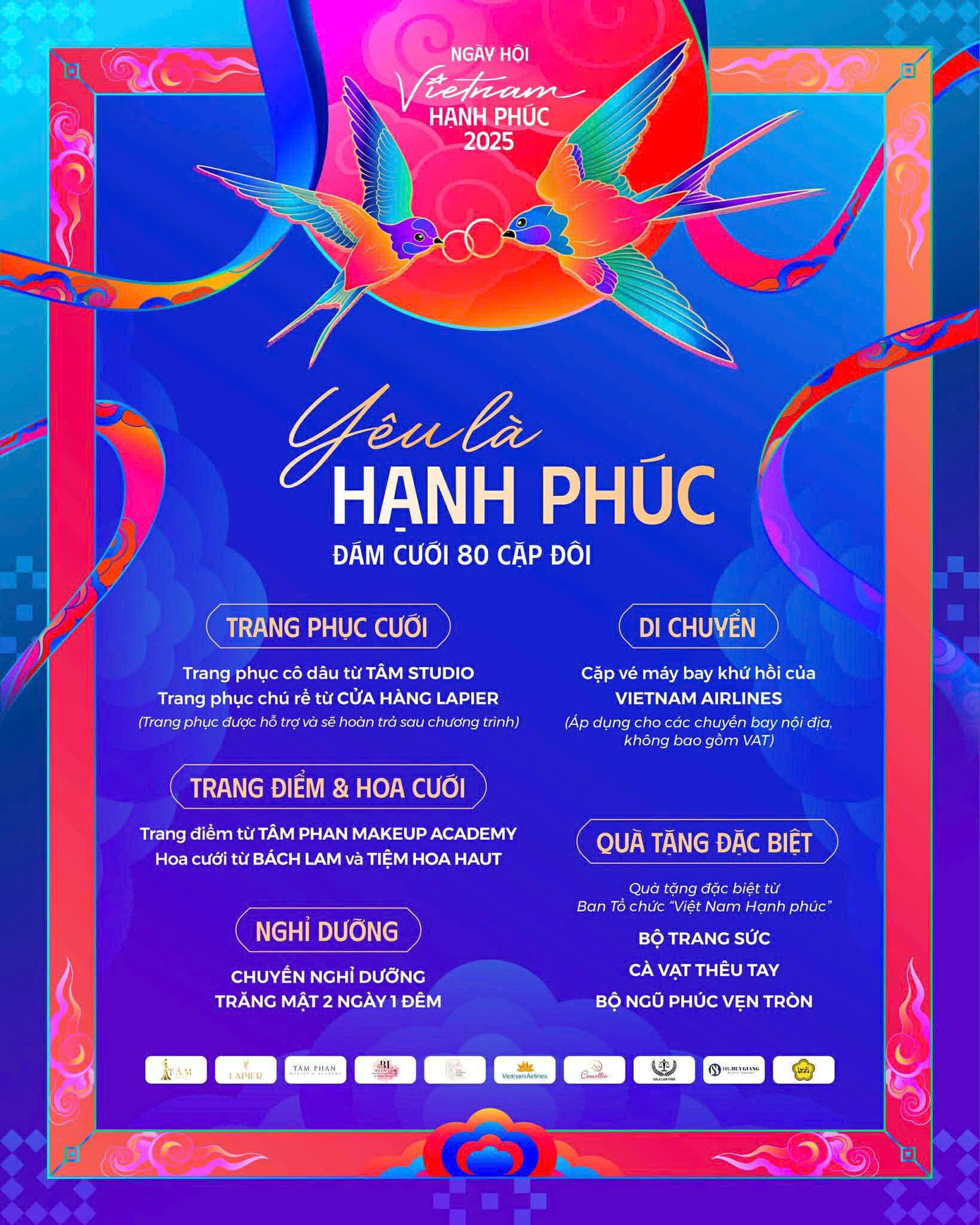Sự tham gia của các cặp đôi là niềm vinh hạnh cho ban tổ chức của chúng tôi và là mảnh ghép hạnh phúc đầy ý nghĩa của Ngày hội Việt Nam hạnh phúc - Vietnam Happy Fest 2025.