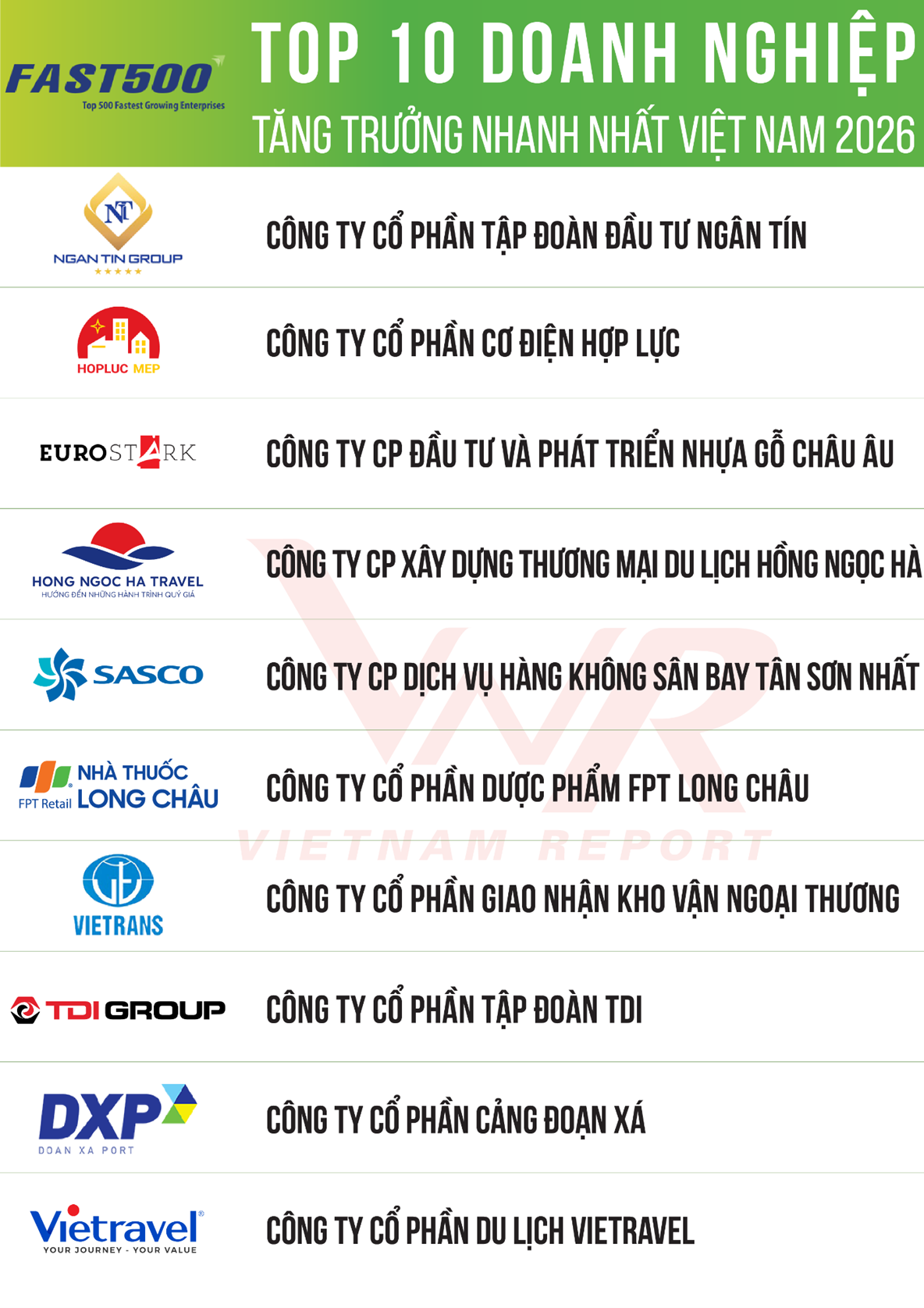 Vietnam Report công bố top 10 doanh nghiệp tăng trưởng nhanh nhất Việt Nam năm 2026
