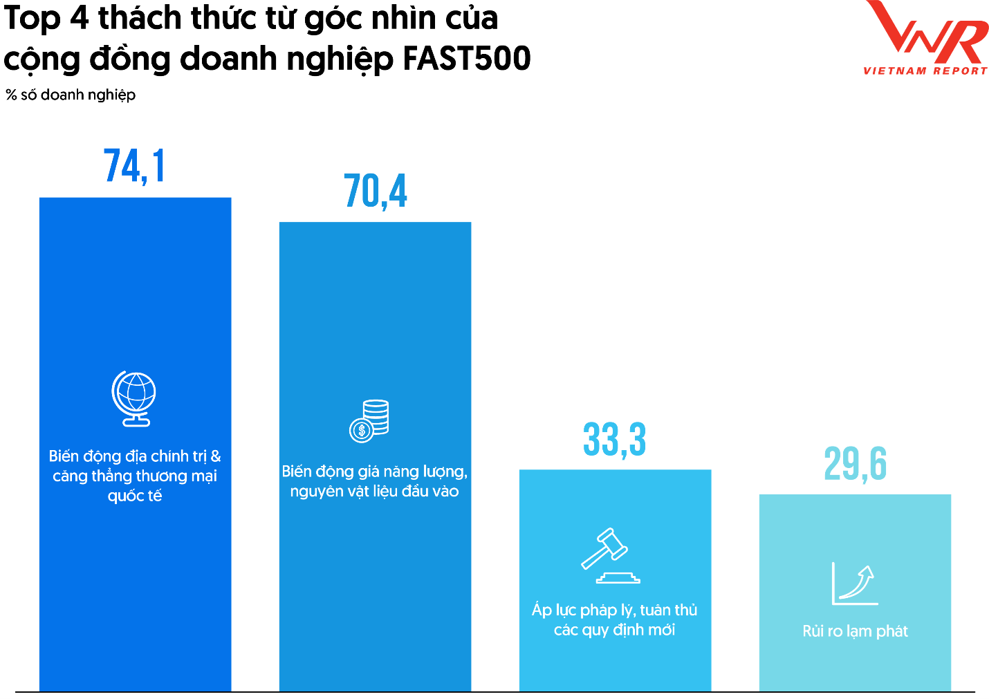 Sự kết hợp giữa bất ổn địa chính trị và biến động giá đầu vào làm gia tăng tính bất định trong hoạch định kế hoạch kinh doanh. Bên cạnh đó, khoảng một phần ba doanh nghiệp cho biết áp lực pháp lý và yêu cầu tuân thủ các quy định mới là một thách thức đáng kể.