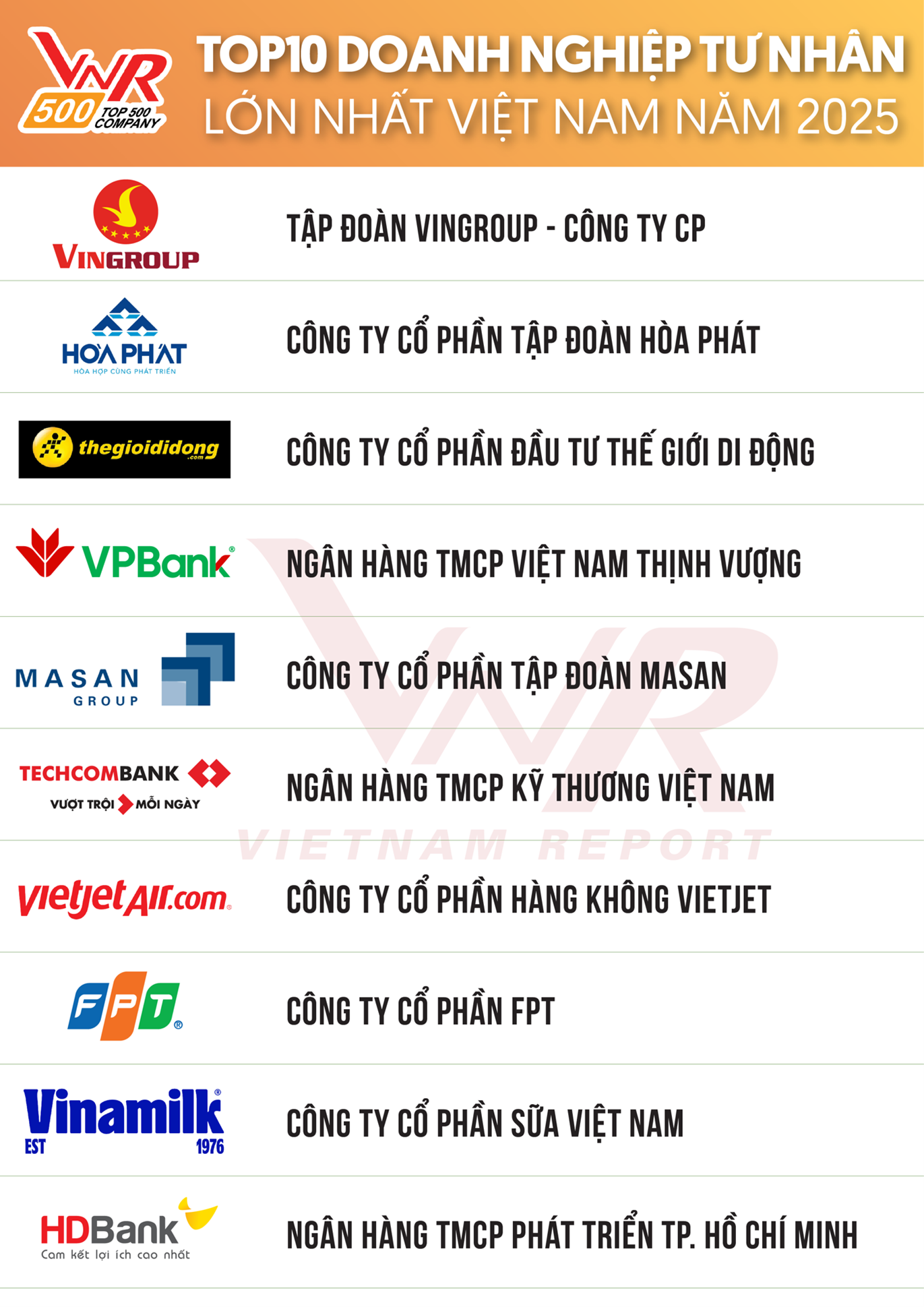 2. Top 500 Doanh nghiệp tư nhân lớn nhất Việt Nam năm 2025.
