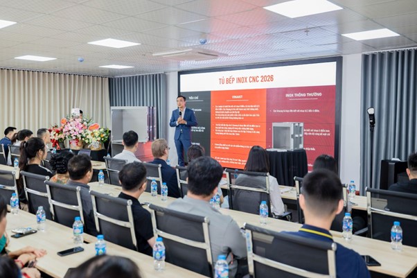 Vinakit khẳng định là một trong những doanh nghiệp hàng đầu trên thị trường tủ bếp Inox với lễ ra mắt "Tủ bếp Inox CNC Vinakit 2026"