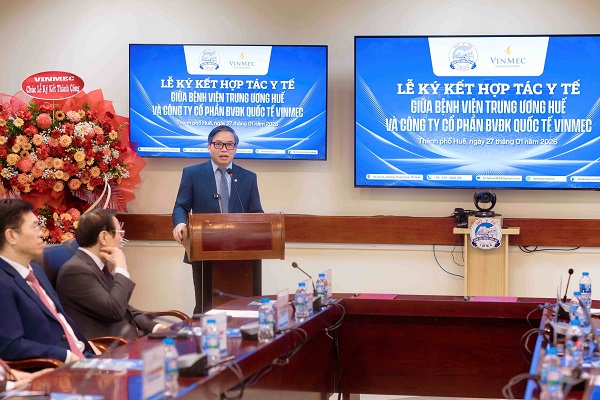 Trong khi đó, GS.TS.BS Phạm Như Hiệp - Giám đốc Bệnh viện Trung ương Huế - bày tỏ sự vui mừng khi hai đơn vị chính thức ký kết hợp tác. Đồng thời, ông đánh giá mô hình quản trị và vận hành bệnh viện hiện đại của Vinmec như một nguồn tham chiếu giá trị, góp phần nâng cao hiệu quả hoạt động của các cơ sở y tế công lập.