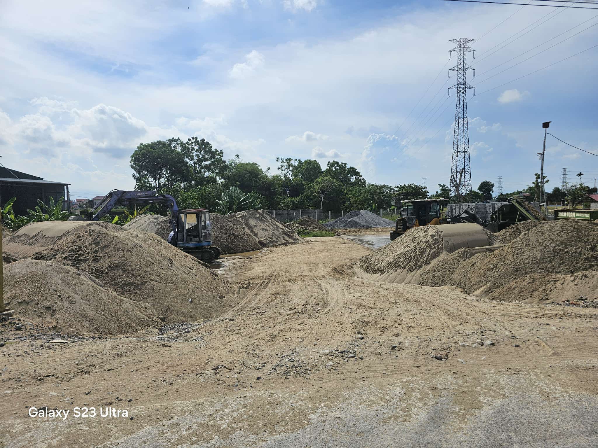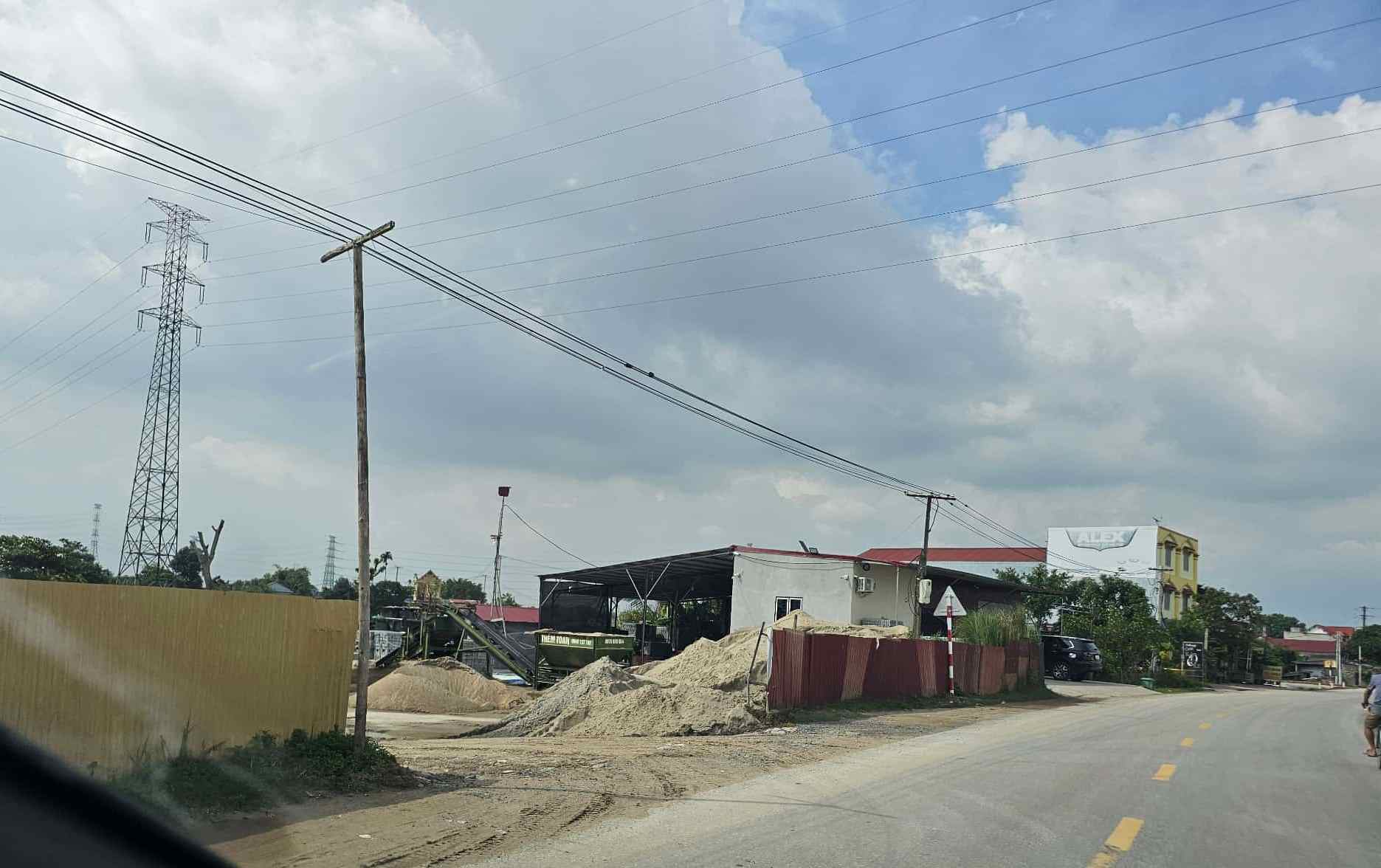 Bãi cát này được tập kết cát và các loại VLXD khác với số lượng lớn, có lắp đặt hệ thống sàng nghiền. Để thuận tiện cho việc tập kết cát, chủ bãi đã tiến hành san lấp đất canh tác, treo biển kinh doanh VLXD có tên Thêm Toàn.