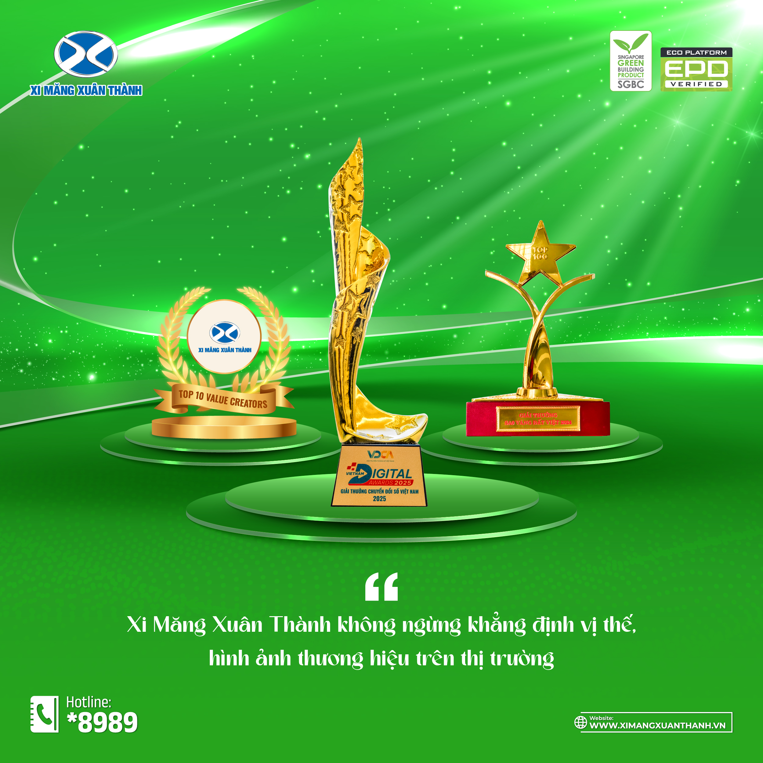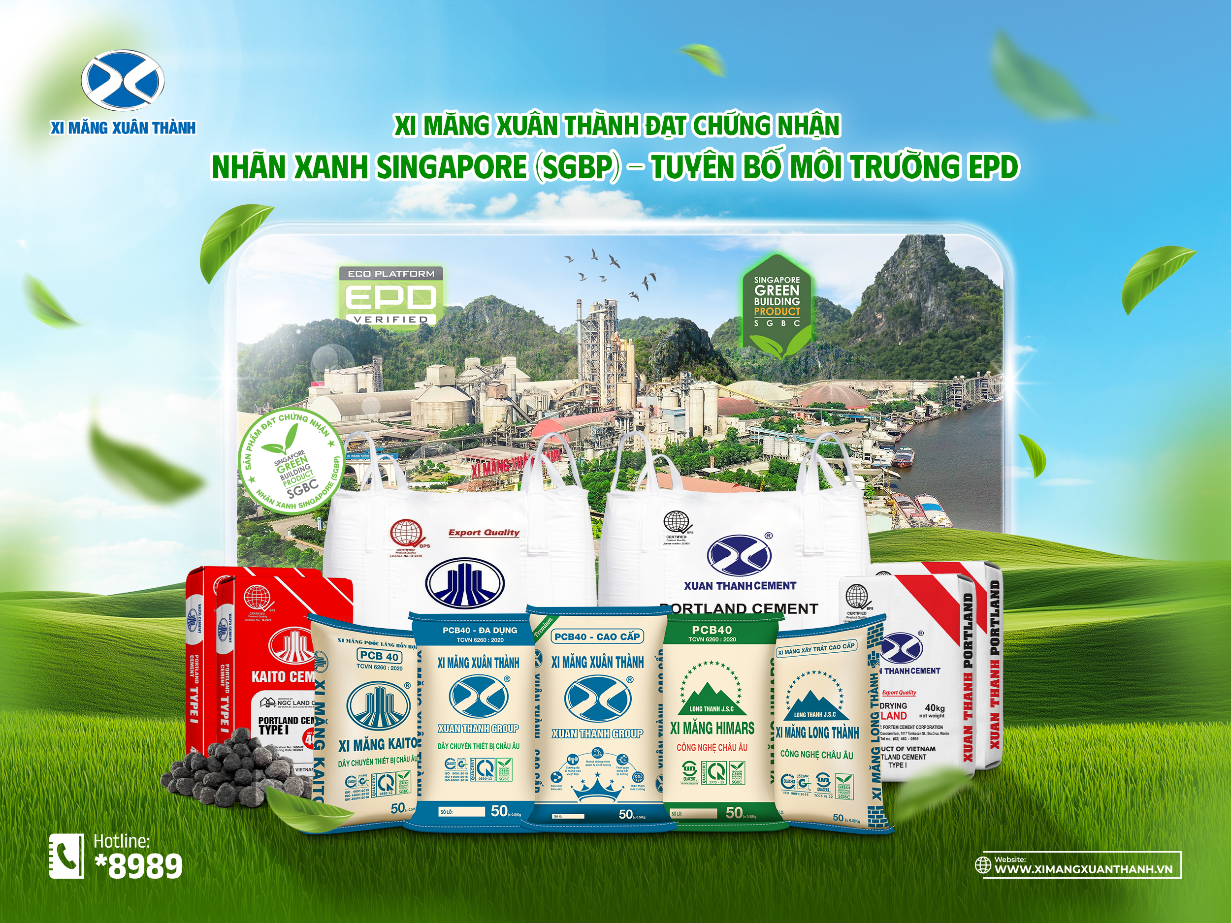 Trong năm 2025, Xi Măng Xuân Thành tự hào đạt hai chứng nhận “xanh” uy tín toàn cầu dành cho các sản phẩm xi măng và clinker. Đó là Chứng nhận Sản phẩm công trình xanh Singapore (Singapore Green Building Product – SGBP) và Tuyên bố sản phẩm môi trường (Environmental Product Declaration – EPD). Việc đồng thời đạt Hai chứng nhận này chính là minh chứng rõ nét cho bản lĩnh tiên phong, tinh thần trách nhiệm của doanh nghiệp trong hành trình phát triển bền vững.