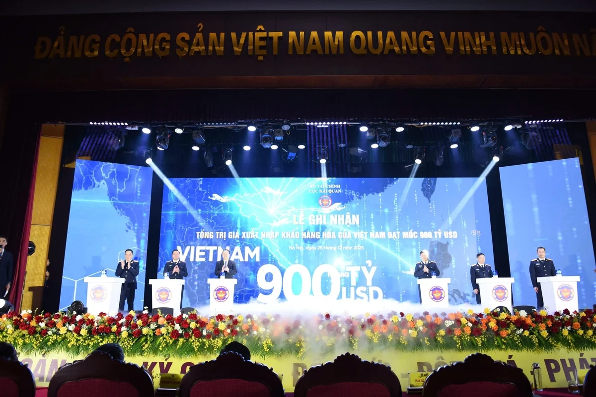 Dự kiến trong khoảng từ ngày 22-26/12/2025, tổng trị giá xuất nhập khẩu sẽ cán mốc 900 tỷ USD. Qua đó, Việt Nam nối tiếp chuỗi mốc quan trọng: 100 tỷ USD năm 2007; 200 tỷ USD năm 2011; 300 tỷ USD năm 2015; 400 tỷ USD năm 2017; 500 tỷ USD năm 2019; 700 tỷ USD năm 2022 và nay là 900 tỷ USD.
