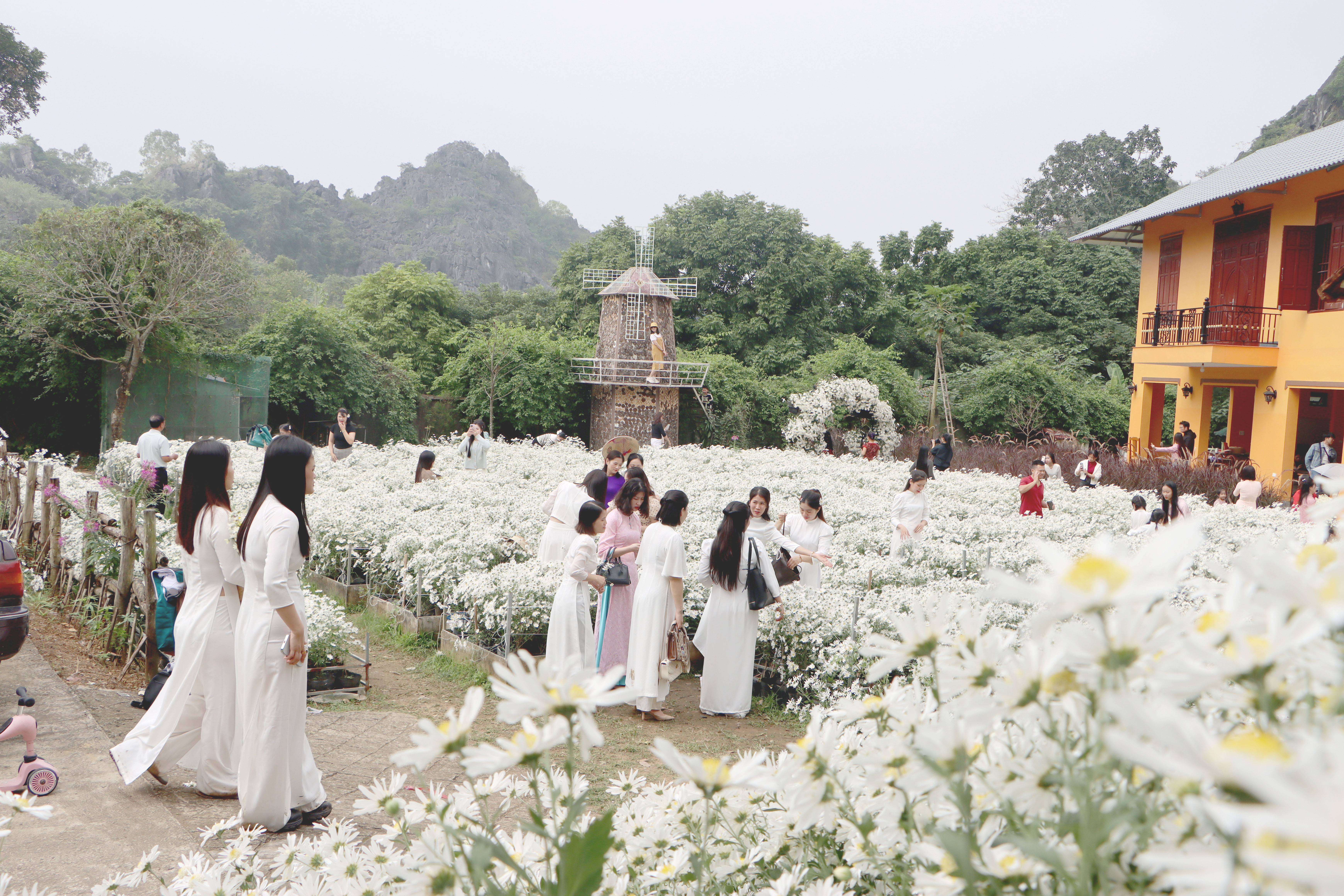 Ngỡ ngàng vườn cúc họa mi bung nở trắng xóa ở Thanh Hoá